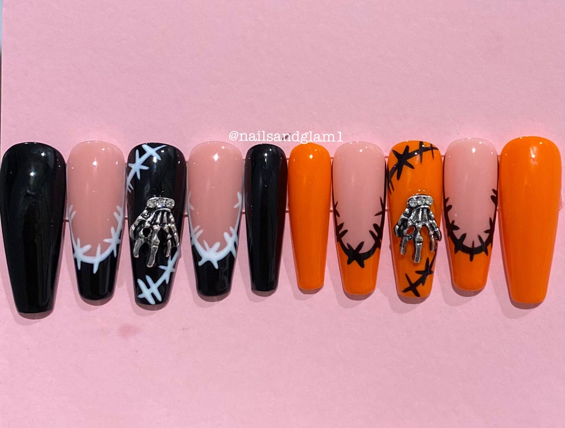 Black & Orange Halloween Nails | Press on Nails UK | Stick on Nails | Reusable | Customised | Handmade | Set of 10