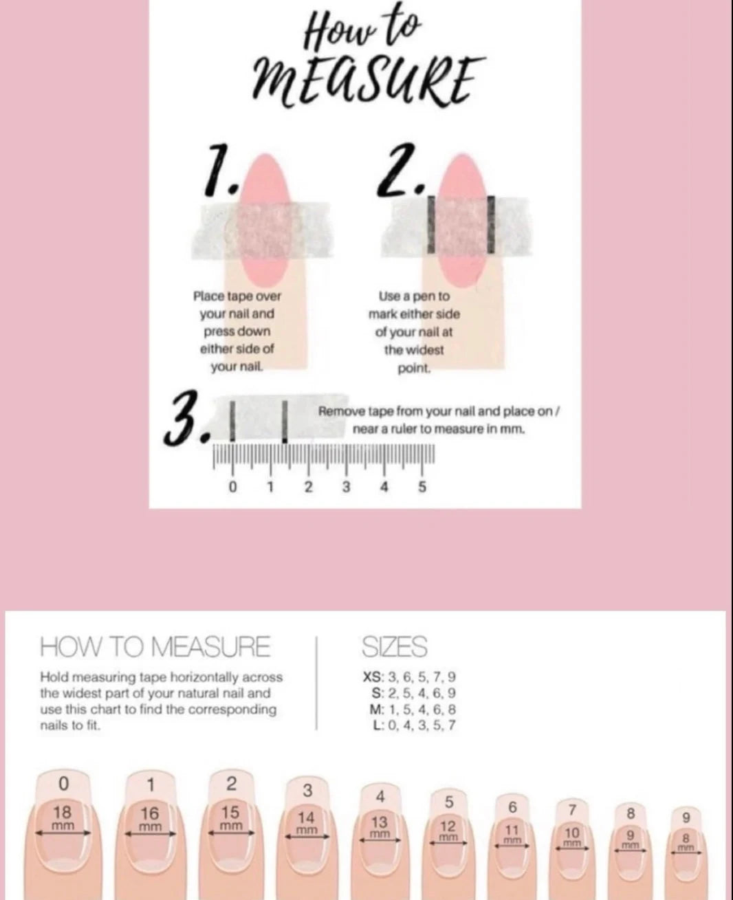 Please refer to the size guide on the listing. If you would prefer a custom size or made to measure nails, please refer to the size guide and provide your measurements.