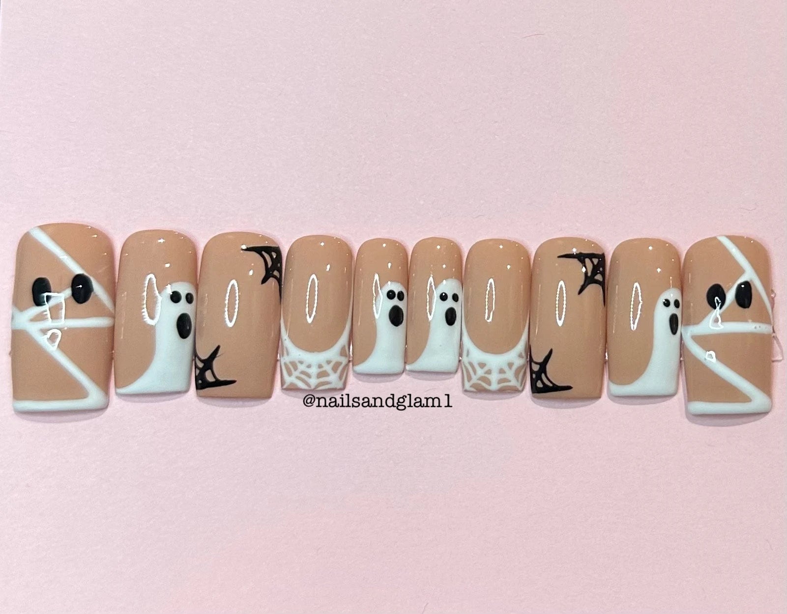 Web & Ghost Nails | Halloween Nails | Press on Nails UK | Stick on Nails | Reusable | Customised | Handmade | Set of 10